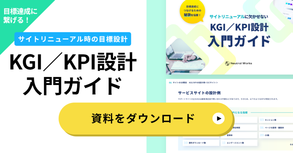 会社により自社サイトのKPI(Key Performance Factor:重要業績評価指標)は違うと思います。商品・サービスページの担当であればCTR、商品・サービスのビジョン訴求ならPVなど、それぞれアクセス数や資料請求数などの目標値を設定しているでしょう。