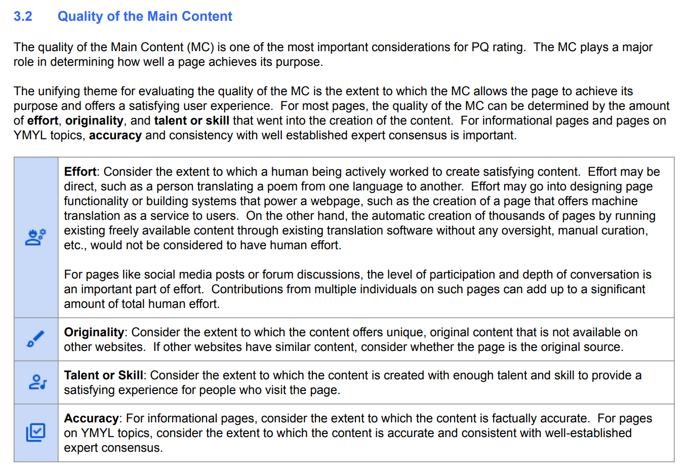 Googleの検索品質ガイドラインの一つとして定められており、「最重要項目」といわれています。