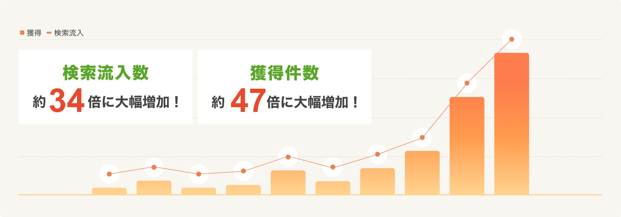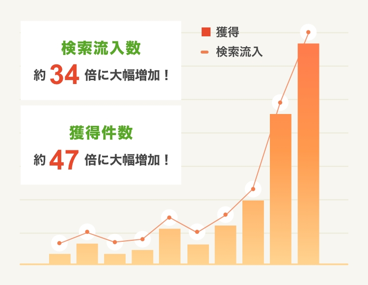 1年で自社サイトの獲得件数約47倍の実績 |