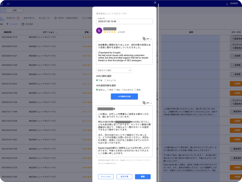 AIによる自動レビュー返信