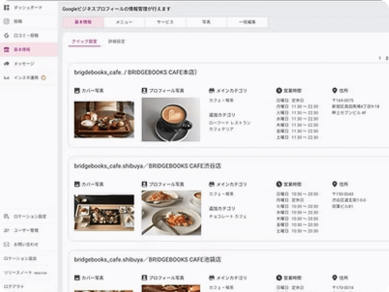 営業時間やメニュー情報を一括で編集・更新でき、わざわざGoogleアカウントにログインし各店舗情報を編集する手間がかかりません。
