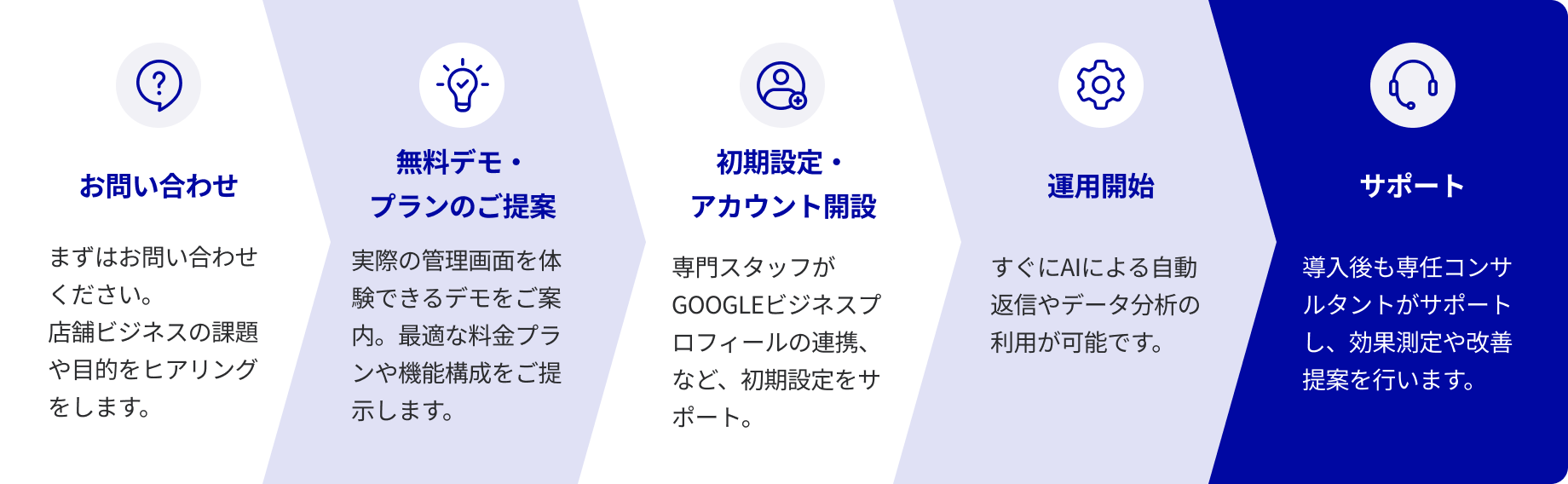 最低3ヶ月からのご契約となります。継続利用や店舗追加も柔軟に対応しております。